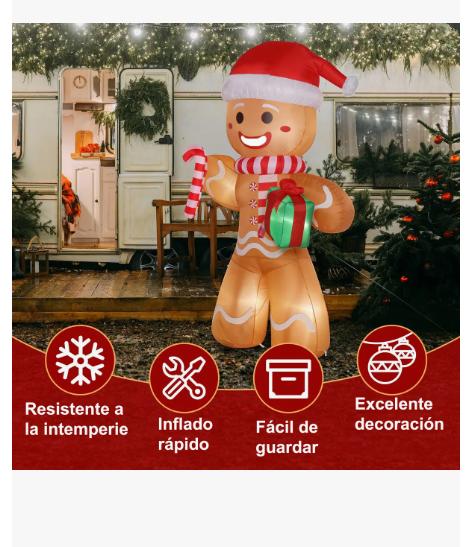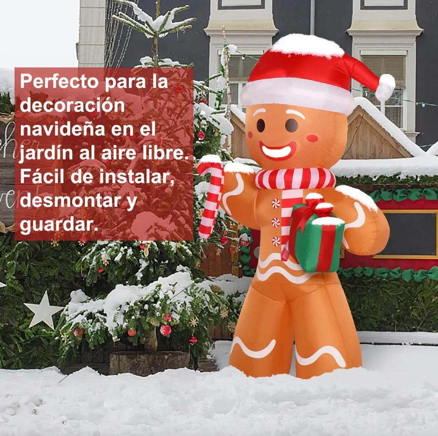 Decoración navideña para jardín inolvidable: haz que esta Navidad sea aún más especial con nuestro lindo hombre de jengibre inflable. El barco inflable de jengibre de 2,4 m de alto está lleno de regalos y dulces, sonriendo y saludando, saludando cálidamente a tu familia y vecinos. A todos los niños les encantará jugar con él, tomar fotografías juntos y grabar momentos inolvidables.