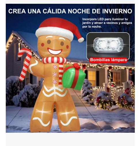 2. LAS LUCES LLAMATIVAS CREAN UN AMBIENTE FESTIVO: agrega un toque de magia a tu patio de decoración navideña al aire libre con las luces LED súper brillantes integradas en nuestro hombrecito de jengibre inflable. Se destacará incluso en la noche más oscura y formará un punto focal encantador. Esta increíble luz realza el ambiente festivo en tu hogar.