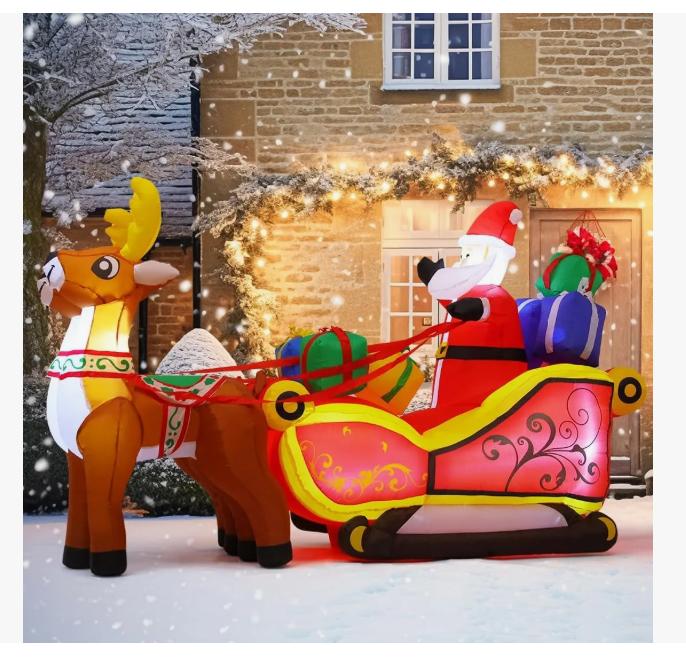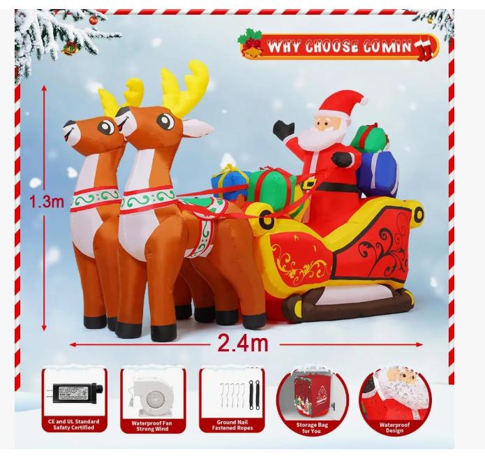 PAPÁ NOEL INFLABLE DE NAVIDAD DE 2,4m - La decoración inflable de Papá Noel para exteriores con luces LED integradas es la decoración inflable navideña más ideal para interiores y exteriores, creando un ambiente cálido y alegre para su jardín y habitación.