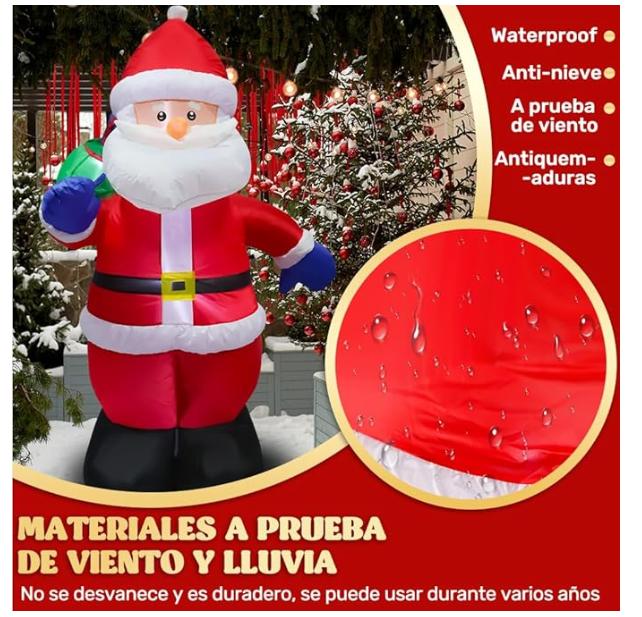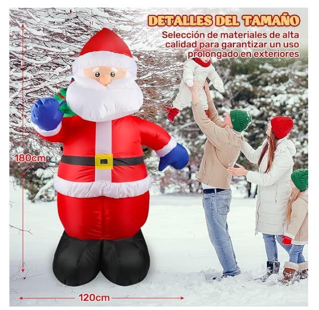 PAPÁ NOEL DE 1.85M ⇒ Papá Noel inflable con luces LED incorporadas puede emitir una luz blanca fría por la noche para iluminar todo tu patio. ¡¡ trae sorpresas y alegrías interminables a tu familia y crea un ambiente navideño cálido! ¡¡ que la belleza y la alegría de la Navidad siempre te acompañen!