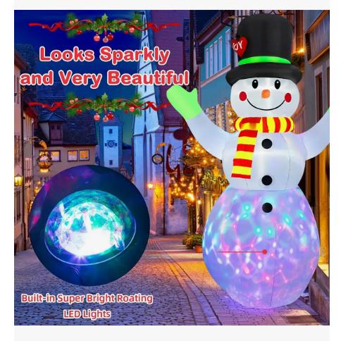Hermosas decoraciones navideñas: este bonito muñeco de nieve inflable de Navidad de 7 pies de alto lleva un sombrero mágico y levanta sus manos con una sonrisa cálida, al igual que dar la bienvenida a los invitados. Muestra este muñeco de nieve inflable en tu patio, definitivamente atraerá su atención y los deleitará cuando tus hijos o tus invitados vengan a la puerta o jardín.