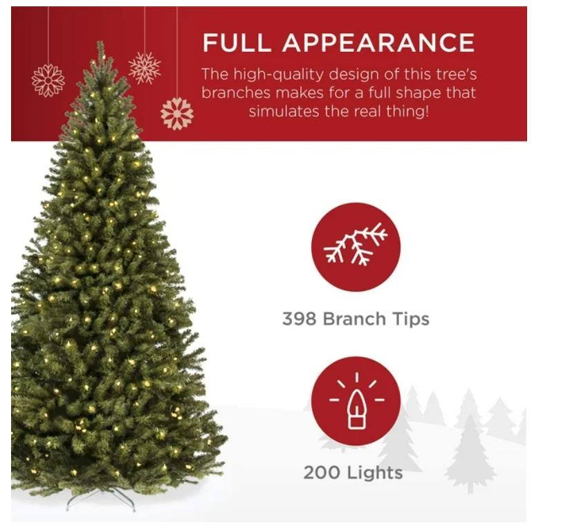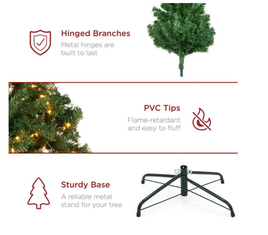 Especificaciones: Dimensiones totales: 32 pulgadas (diámetro) x 54 pulgadas (alto). Peso: 9 libras. Material: metal, PVC. Tiempo de pelusa: aproximadamente de 10 a 15 minutos. Ignífugo. Nota: si se apaga una bombilla, también se apagarán todas las bombillas de la misma sección del árbol. Las demás secciones del árbol no se verán afectadas. Requiere montaje (con instrucciones) El paquete incluye: soporte para árbol de Navidad (200) luces precolgadas (reemplazables si se rompen) Solo para uso residencial BCP SKU: SKY5027 - DISEÑO CLÁSICO: inspira la alegría navideña esta temporada con un favorito del cliente que ayuda a que la temporada parezca completa; equipado con ramas resistentes, lo suficientemente fuertes como para sostener guirnaldas y todos tus adornos favoritos para un aspecto personalizado - APARIENCIA COMPLETA: esponja completamente las ramas para dar un aspecto saludable y natural, con 763, 798, 1,346, 2,028 y 4, 188 puntas (según el tamaño del árbol). También ahorras tiempo