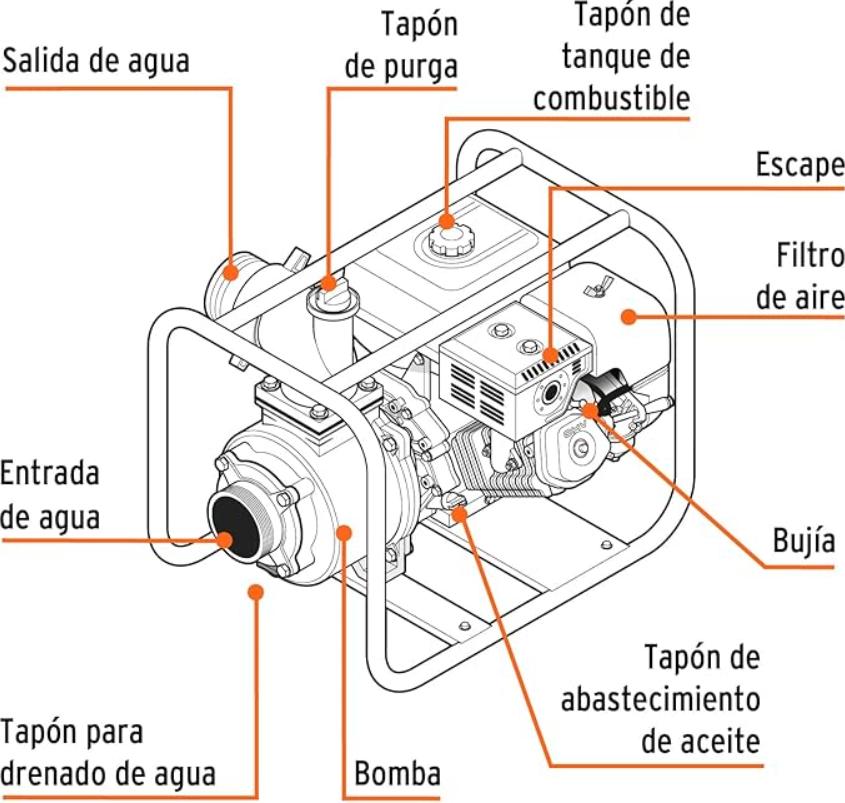 Carcasa de aluminio e impulsor de hierro, Arranque manual (cuerda retráctil)