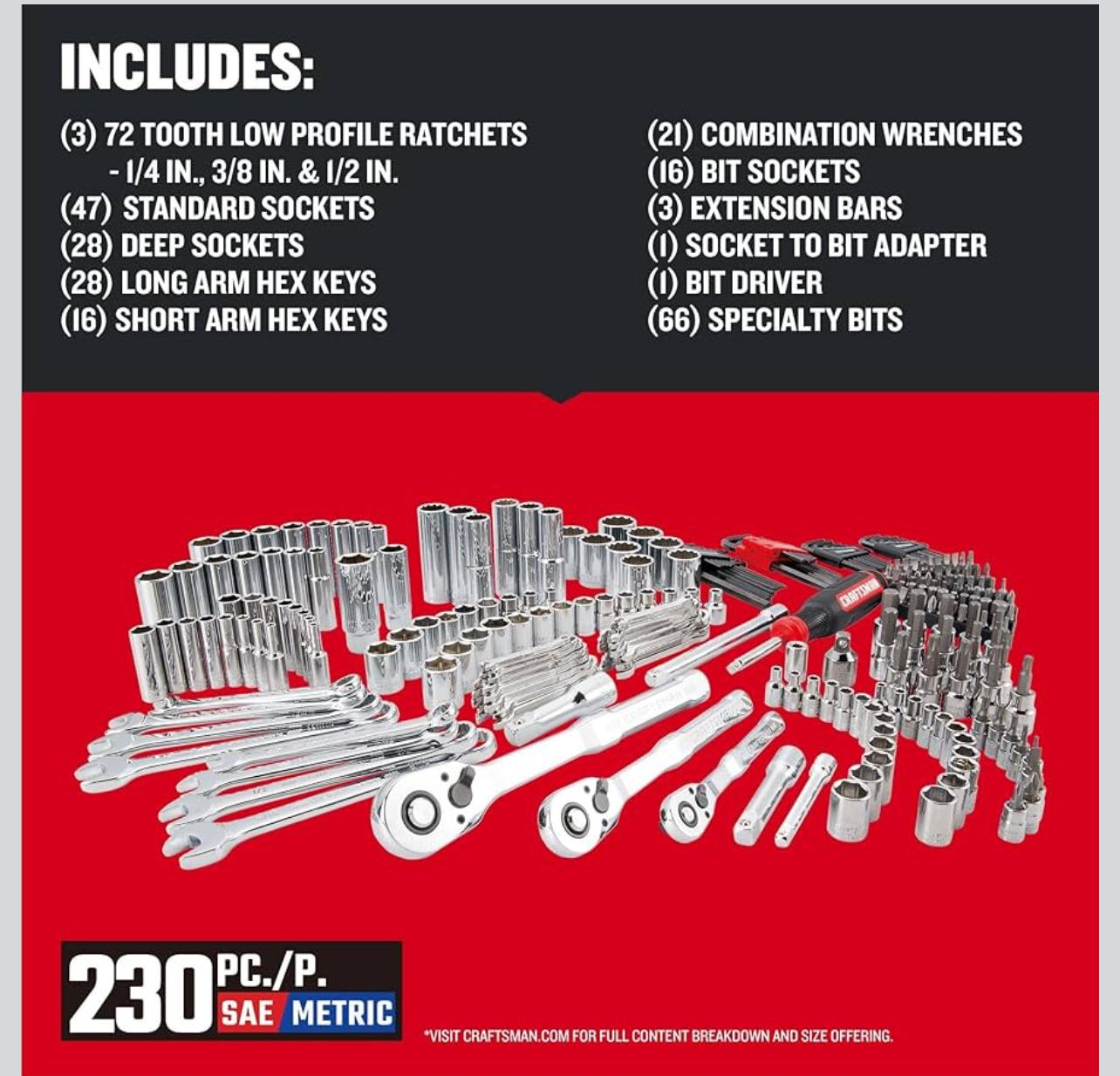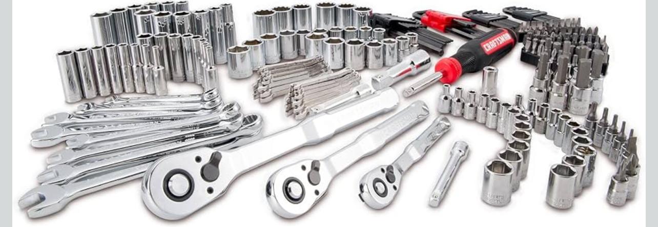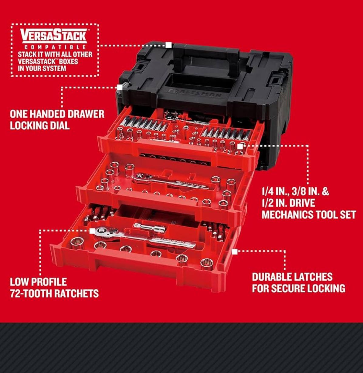 Juego de mecánica todo en uno: contiene un surtido completo de enchufes, trinquetes, llaves y brocas especiales para entusiastas y mecánicos de automóviles, empacado en una caja duradera de 3 cajones