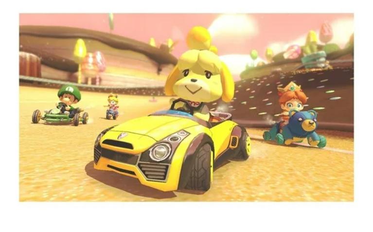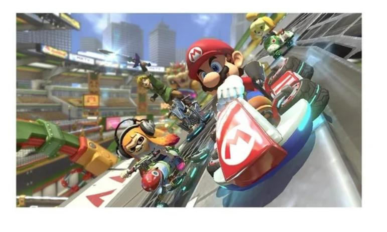 ¡Compite con la versión definitiva de Mario Kart 8 y juega en cualquier momento y en cualquier lugar! Reta a tus amigos o combate en los nuevos campos de batalla. -Tres vehículos nuevos añadidos. -Dirección inteligente para permanecer en la pista. (Incluso en 200cc). -Juega en cualquier momento y en cualquier lugar en el modo sobremesa. -Circuitos y personajes de la versión Wii U regresan. -Recomendado para todas las edades.